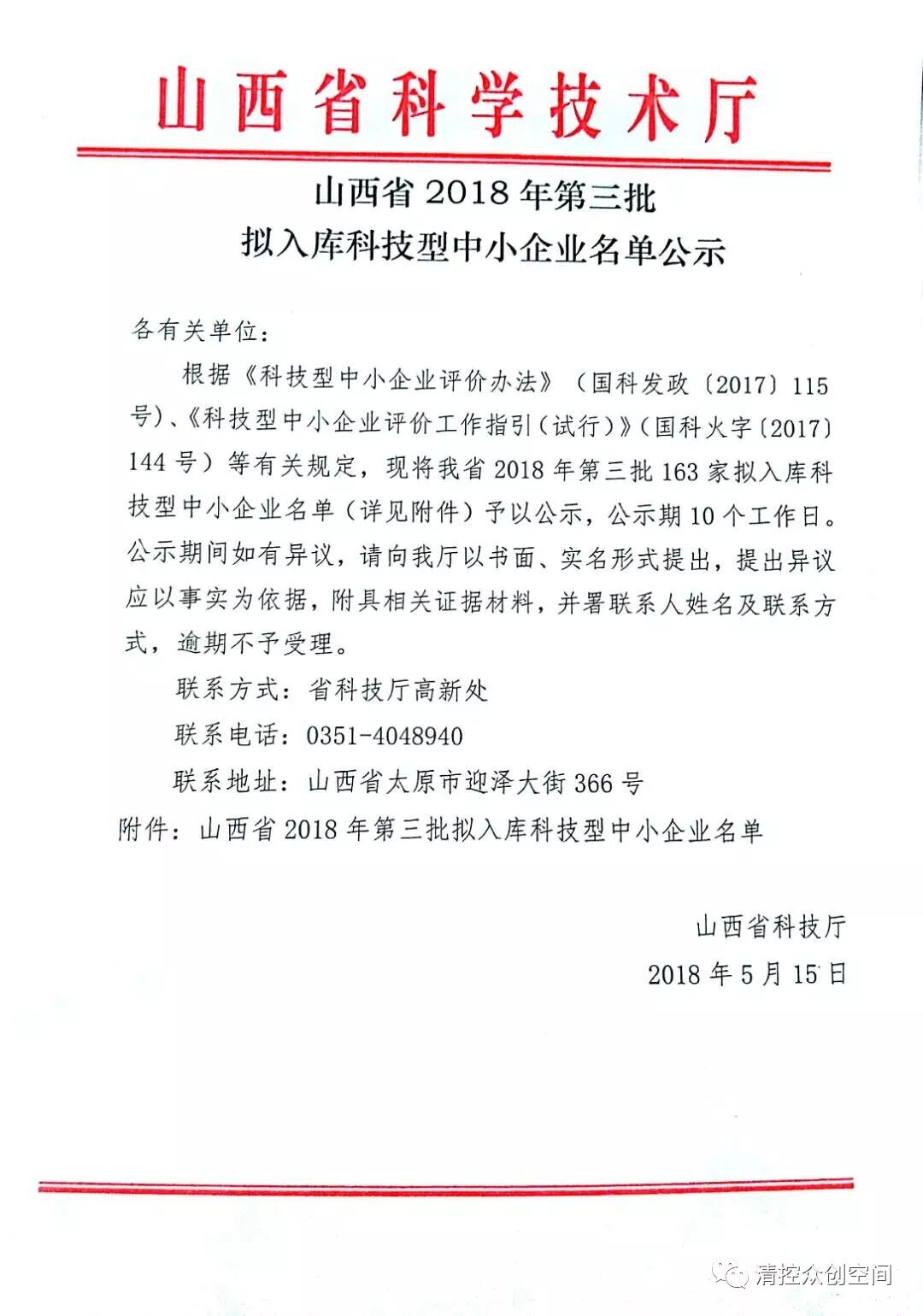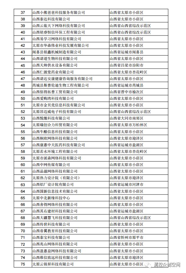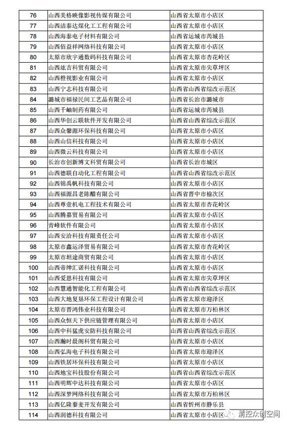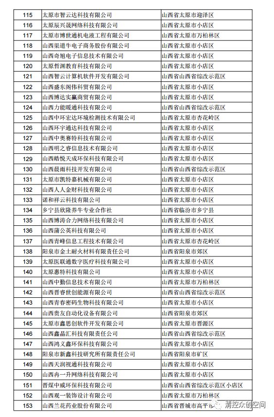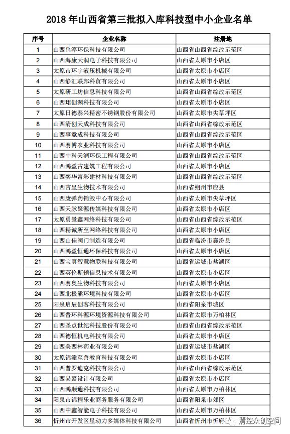 山西省2018年第三批拟入库科技型中小企业名单公示